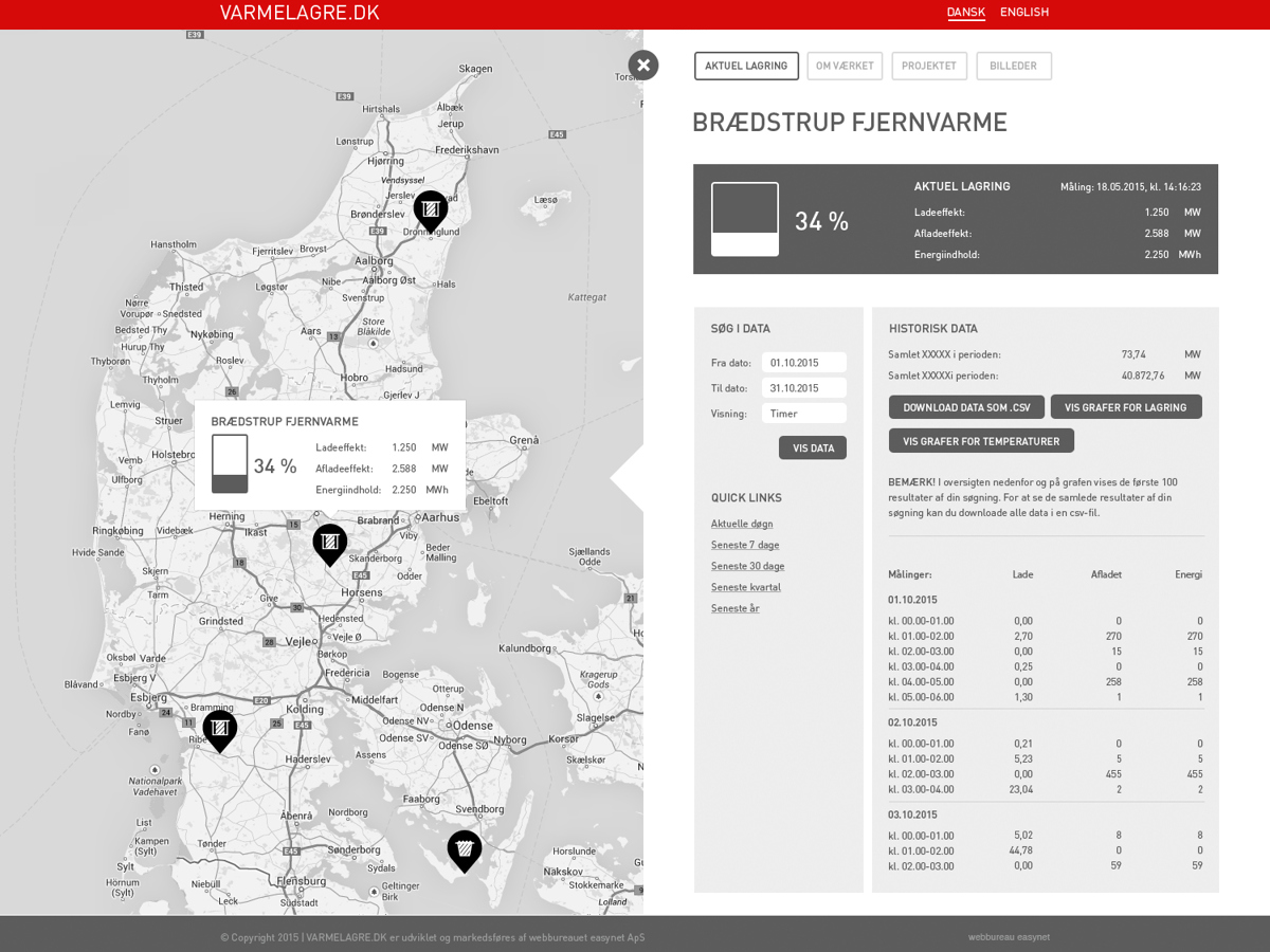 Aflæs den øjeblikkelige ladning eller afladning på lageret. Se det nuværende energi indhold på de fjernvarmetilsluttede lageranlæg i Danmark.