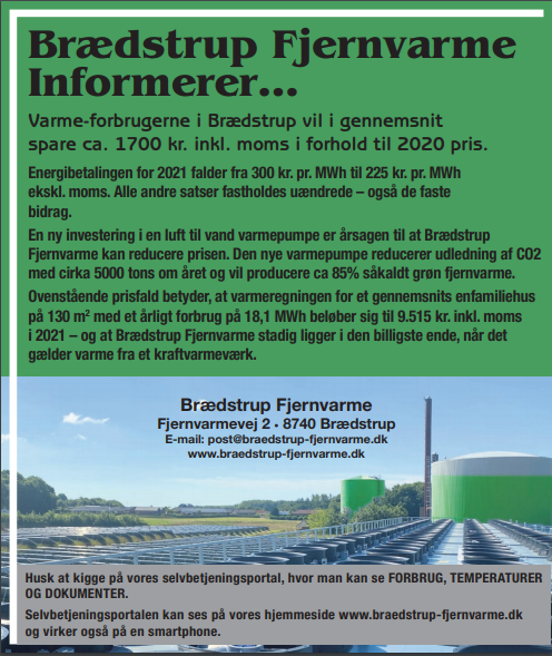 En stor investering i en luft til vand-varmepumpe er årsagen til, at Brædstrup Fjernvarme fra næste år kan sænke forbrugernes energibetaling med 25 procent.